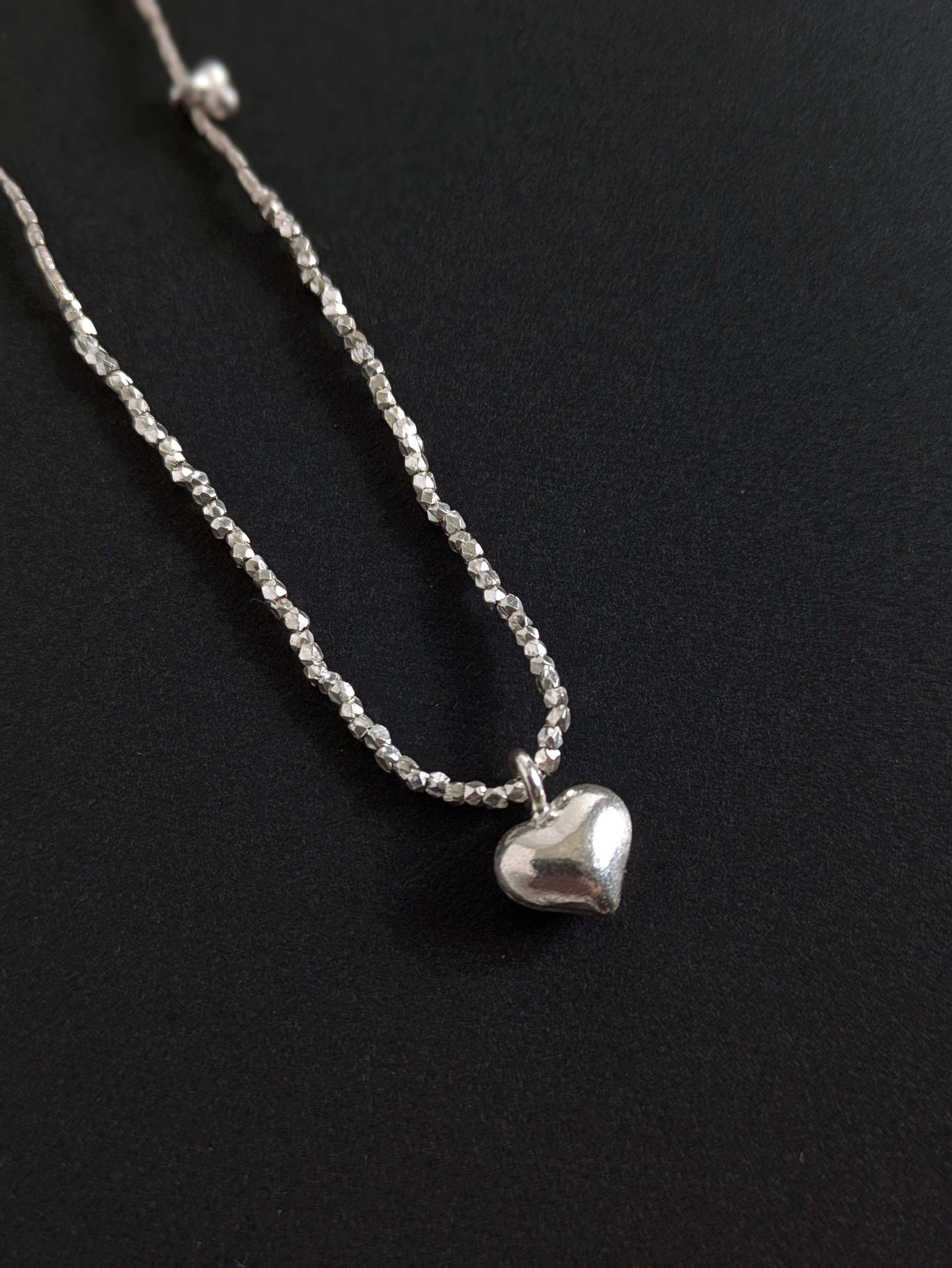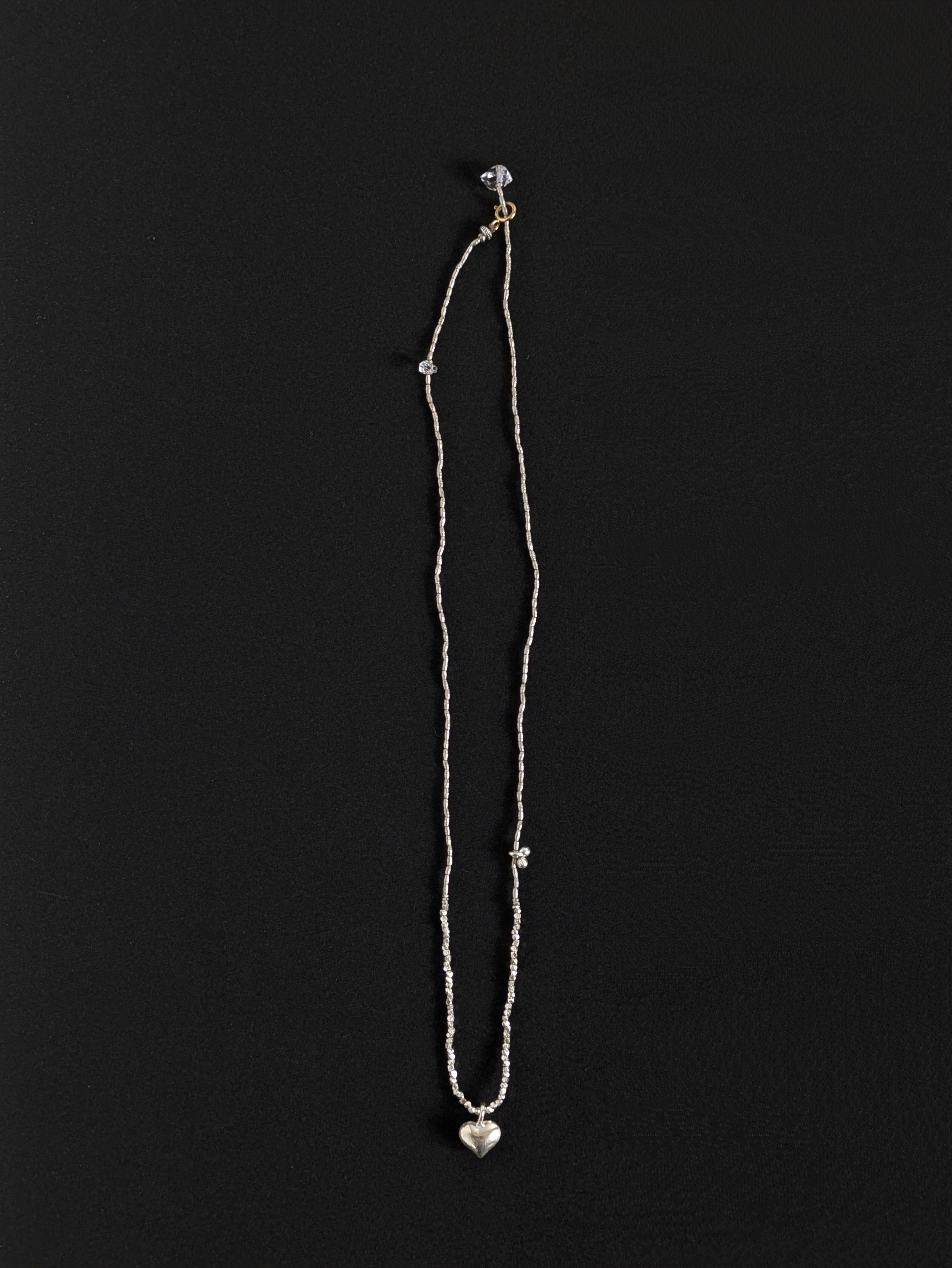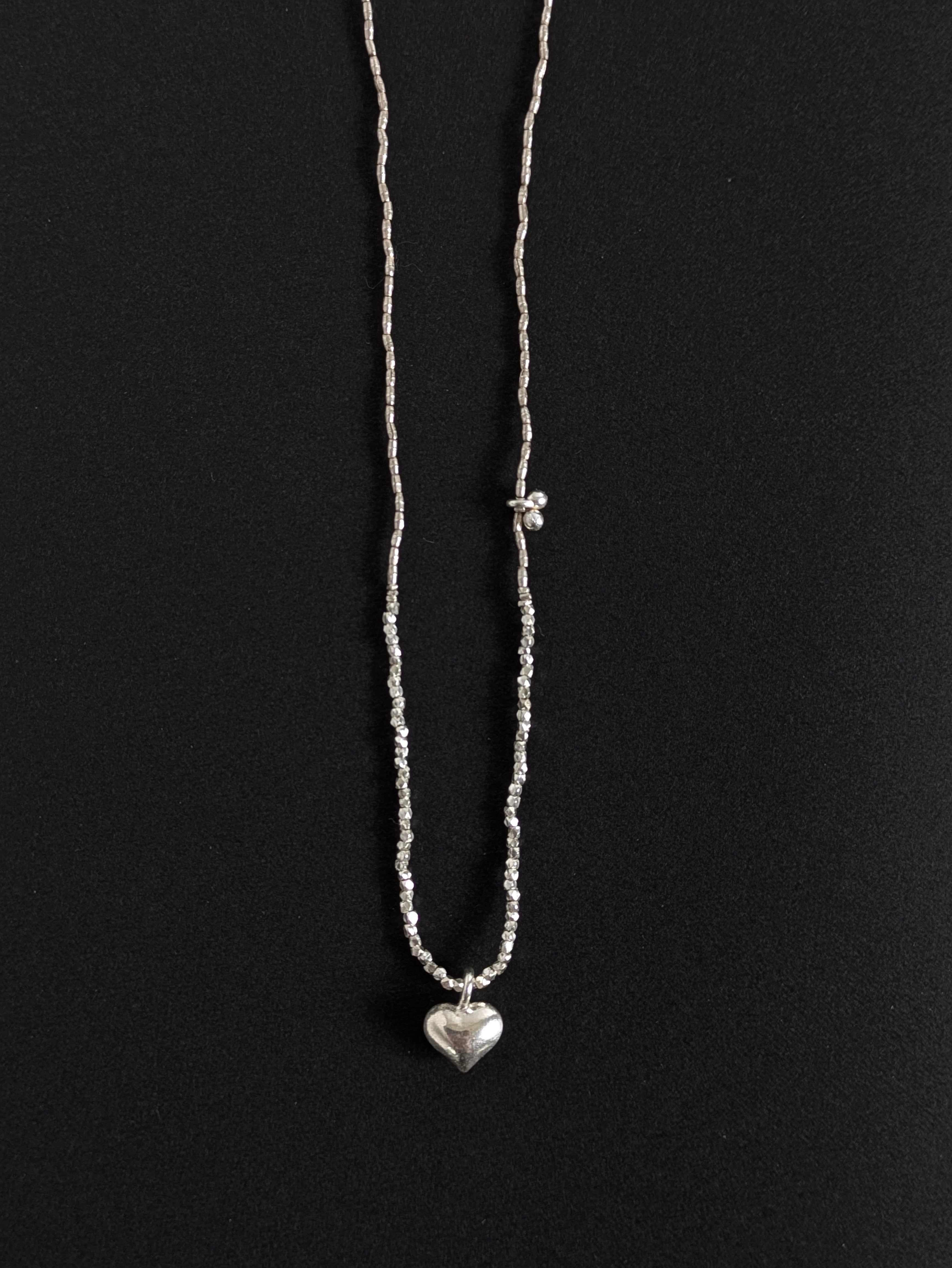 ハートのシルバーチャームをカレンシルバーで繋いだネックレス。