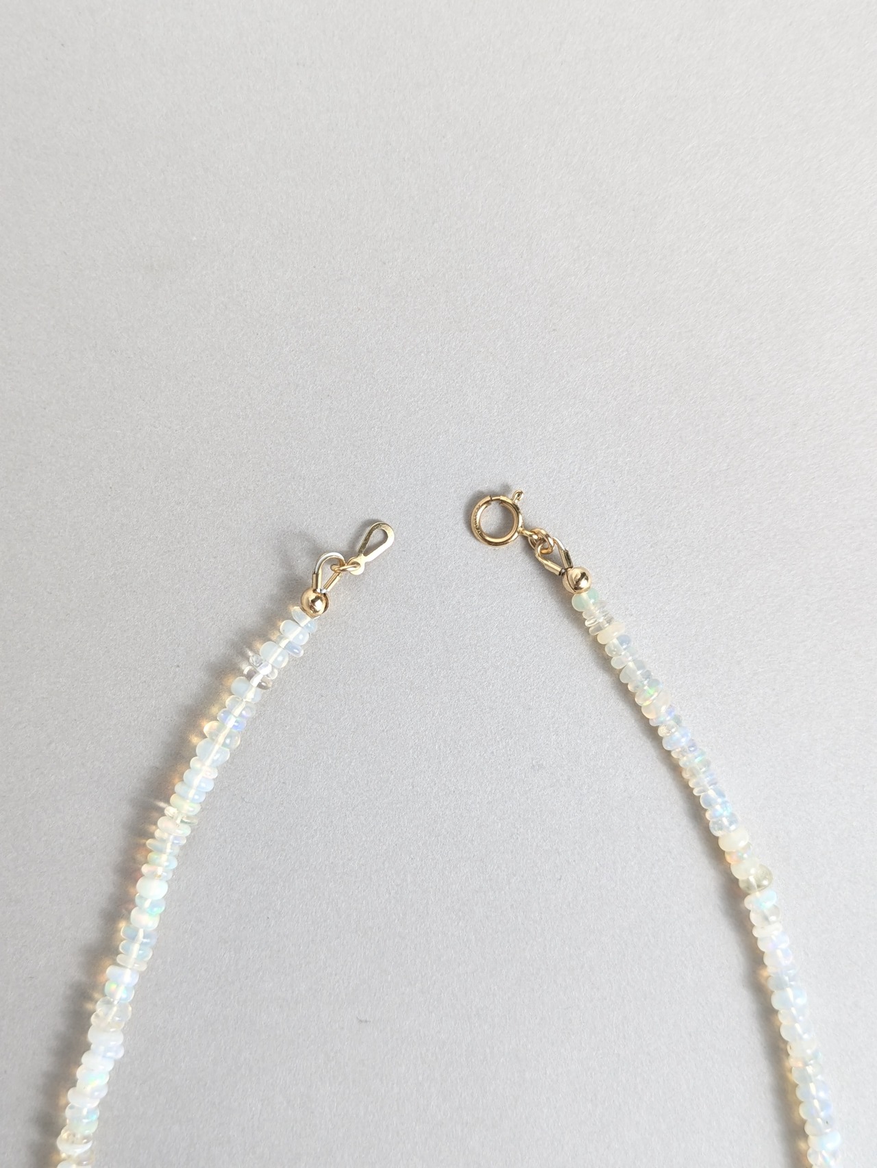 透明感あるエチオピアオパールが首元を華やかに彩ります。